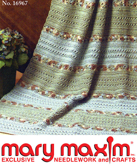 Craft a lovely afghan with this crochet pattern featuring a straightforward stitch design and a few color changes. Originally created with Paton's Decor worsted weight yarn, each 3.5 oz skein offered 210 yards at the time. Choose from a wide variety of worsted-weight yarns in your favorite shades to perfectly complement your home decor. We recommend Red Heart Super Saver with its amazing selection of solids, stripes, and variegated. Keep in mind yardage varies. Materials List: Light (4 balls), Variegated (2 balls), Dark (4 balls), and crochet hook size J/10 (6 mm). Finished size 40 x 60" (104.5 x 152.5 cm)—Intermediate crochet.