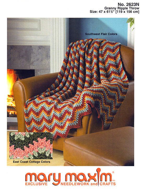 Create a stunning Granny Ripple throw with this easy-to-follow crochet pattern. Originally crafted with Red Heart TLC Lustre, a worsted weight yarn offering 240 yards per 5-oz skein, this timeless design can be made using any worsted weight yarn that matches your home’s color scheme. Customize your throw to perfectly complement your decor, keeping in mind that yardage may vary depending on your yarn choice. We recommend Red Heart Super Saver! Materials List: Dark Red (5 skeins), Spruce Green (4 skeins), Copper (3 skeins), and a crochet hook size U.S. H/8 (5 mm). Finished size 47 x 61.5 (119 x 156 cm)—Easy crochet