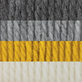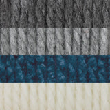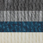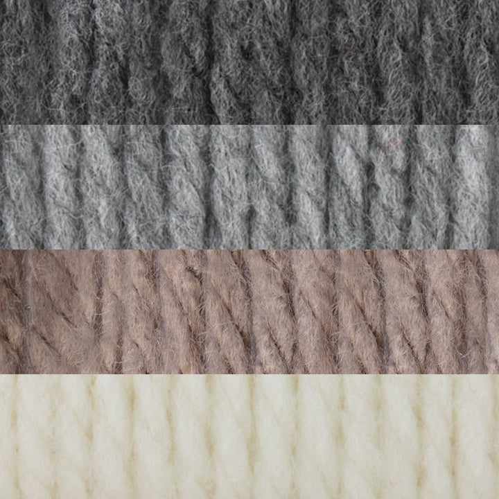 Bold bands of colour accent the simple textures of this easy to knit blanket. Simple Stripe Blanket is worked back and forth in rows on a circular needle. Knit and purl stitches with a few increases and decreases make this a fun project. Kit includes Bernat Softee Chunky yarns and instructions. Requires a 36” (90 cm) circular needle size 8 mm. Finished size 49" x 62”. Easy Knit.