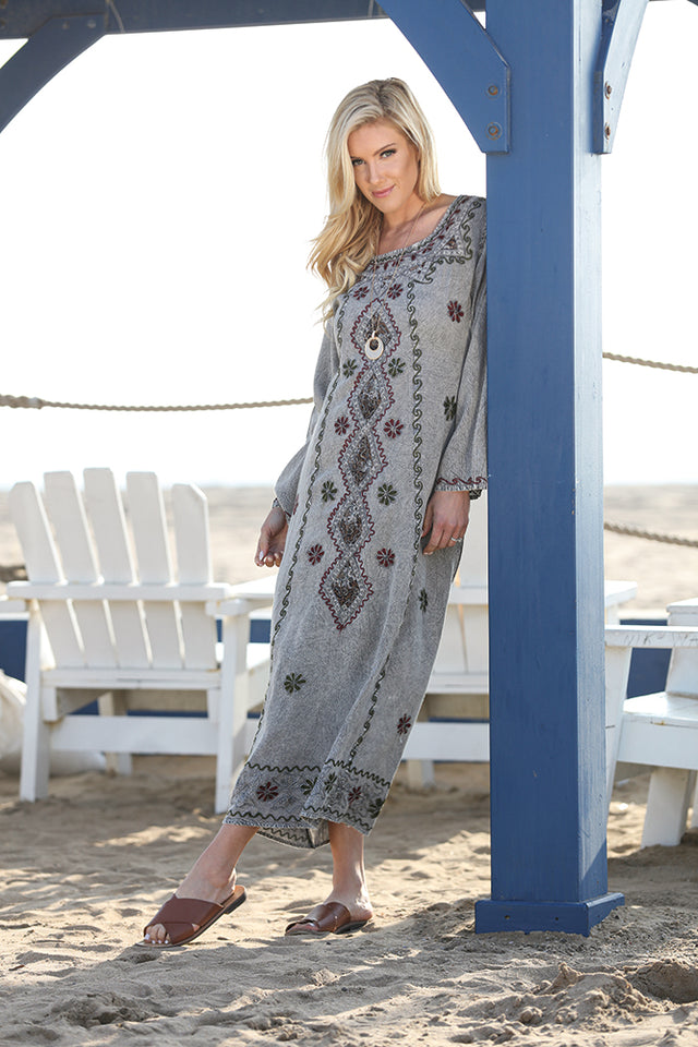 Transform any summer outing into a stylish affair with our Embroidered Grey Cabled Dress. The light weight fabric keeps you cool while the delicate embroidered details add a touch of elegance. Perfect as a beach cover-up or for a day of shopping, this dress is the ultimate summer must-have! 100% rayon.