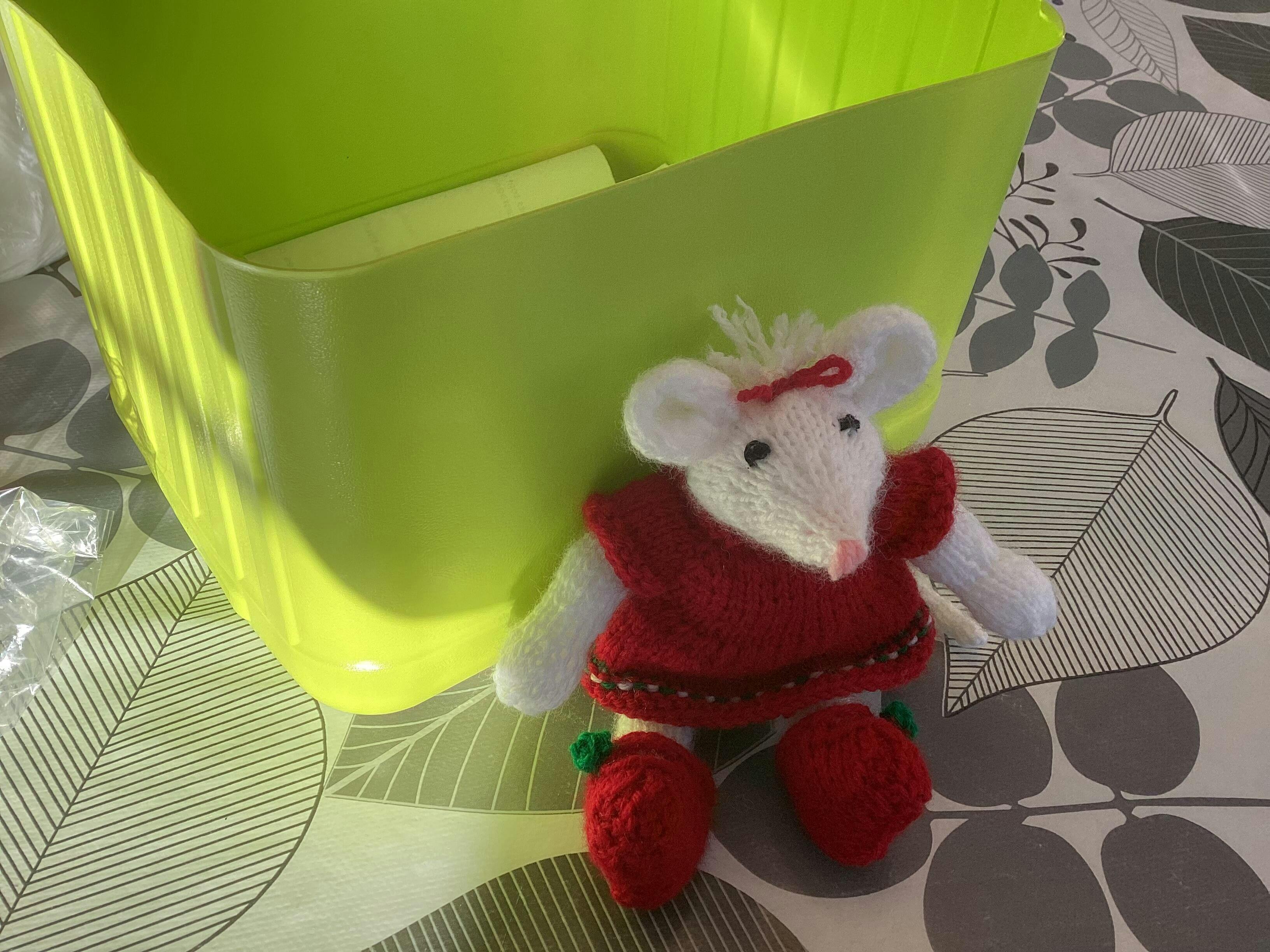 Celebrate the holidays with this festive family of Christmas Mice, each dressed in adorable holiday outfits. These playful little characters are sure to bring smiles and a touch of whimsy to your seasonal decorations. Perfect for adding charm to your mantel, tabletop, or holiday village, they capture the joyful spirit of the season. Their cheerful expressions and detailed costumes make them delightful companions for your festive celebrations, spreading warmth and happiness throughout your home. Kit includes Mary Maxim Twinkle yarns, buttons, floss and instructions to make 4 mice and 2 candy canes as shown. Requires needles size 2.75 mm, DPNs size 2.75 mm and polyester fibrefil. Approx. 7" tall.