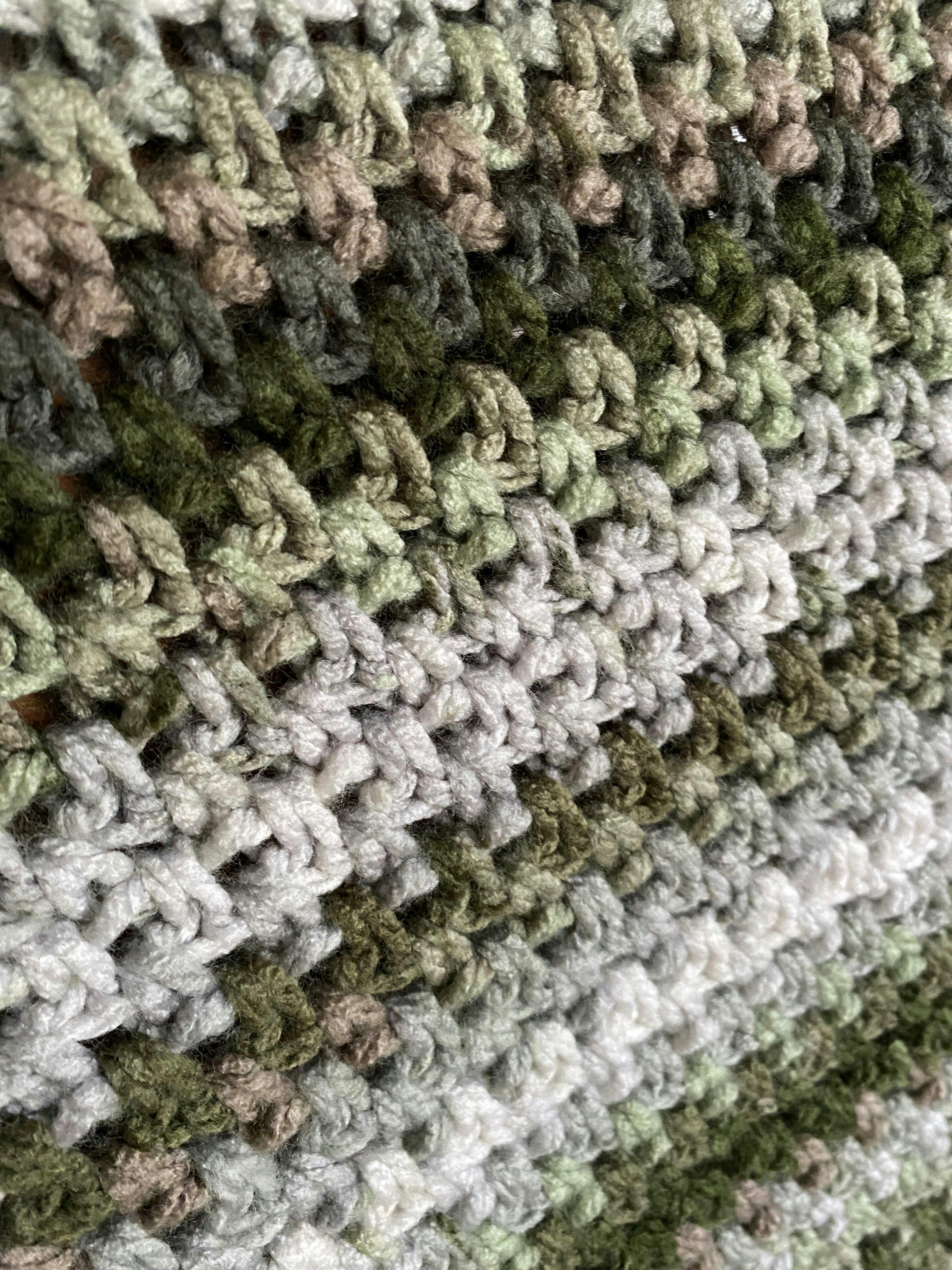 This Bulky weight 100% acrylic is perfect for soft, easy-care, quick knit and crochet projects. Available in a gorgeous range of self-striping hues to create colourful pieces with ease. Machine wash & dry. 109 yds (100 m) per 3.5 oz (100 g) ball. Suggested gauge: 11 sts & 15 rows to 4" (10 cm) on size 8.0 mm needles. Yarn weight: 5-Bulky.