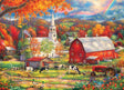 Enjoy the charm of rural life with the Country Blessings Jigsaw Puzzle! Picture farm animals happily grazing in open fields as vibrant fall colours shimmer from the trees. This playful puzzle captures the peaceful beauty of the countryside, inviting you to piece together scenes filled with cozy barns, fluttering leaves, and the gentle rhythm of farm life. Perfect for those who love nature and a touch of seasonal warmth, it turns puzzle time into a joyful escape to the heart of autumn’s embrace. Size 26.75 x 19.25". 1000 pieces.