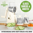 The Nutri Slicer makes preparing healthy meals effortless and quick by handling all your slicing, chopping, and grating needs for vegetables, cheeses, and fruits. Its easy-to-turn handle ensures smooth operation, while the suction base lock keeps the slicer securely in place for safe use. Equipped with three interchangeable blades, it offers versatile cutting options to suit any recipe. With the Nutri Slicer, you can enjoy fresh, nutritious dishes without the hassle, saving time and enhancing your kitchen experience.
