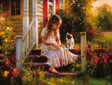 Experience the joy and beauty of Spring with our Perfect Spring Day Jigsaw Puzzle. Join a little girl and her pet kitten on their porch as they bask in the sunshine and admire the colourful blooms. An ideal way to relax and unwind while appreciating the wonders of nature. Size 24 x 18". 500 pieces.