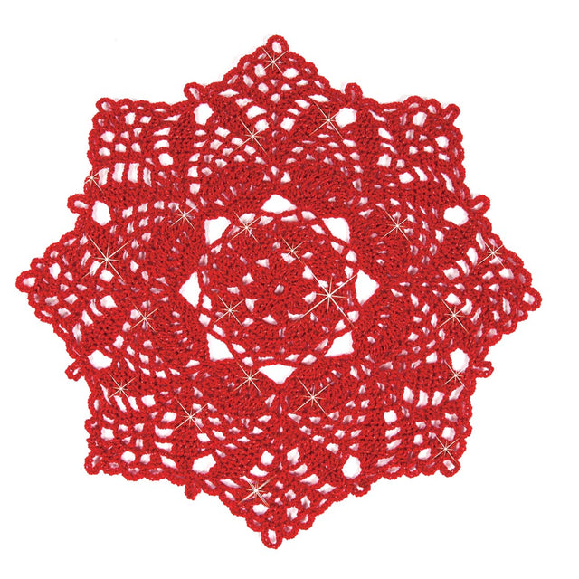 Create beautiful festive placemats with this exclusive crochet pattern, ideal for those who value both creativity and practicality. Originally designed in 2012 for the Mary Maxim Crochet Club, it featured the Mary Maxim Sparkle DK/sport weight yarn, which offered 375 yards per 100 g ball to ensure quality and durability. Elevate your holiday décor with this timeless, handcrafted touch. We invite you to explore a variety of sport-weight yarns—just be sure to check yardage differences. Materials List: 3 balls and crochet hook size G/6 (4 mm). Finished size 16.5" (42 cm) diameter, makes six—Intermediate crochet.