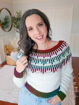 Stand out in style with our Mosaic Ridge Crochet Pullover. Featuring a stunning mosaic design in vibrant Prism yarn colours, this pullover is perfect for adding a pop of colour to your wardrobe. With long sleeves and a boat neck, it's both stylish and comfortable. Elevate your look with this colourful and unique piece. Designed by Briana K. Designs. Kit includes Mary Maxim Mellowspun DK, Mary Maxim Prism yarns and instructions. Requires crochet hook size 4.50 mm. Intermediate Crochet.
