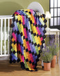 Squares of vibrant colours to crochet using worsted weight yarn. Designed originally using Caron Simply Soft yarn, which offered 157 yds per 3 oz skein at the time. Explore our fantastic range of worsted yarns, featuring Simply Soft, and let your creativity shine with colors inspired by your favorite home decor! Keep in mind yardage will vary. Materials List: MC Black (5 skeins), and 2 skeins each of colors: A Watermelon, B Mango, C Lemonade, D Limelight, E Berry Blue, F Grape, and crochet hook size I/9 (5.50 mm). Finished size 43 x 60" (109 x 152.5 cm)—Intermediate crochet