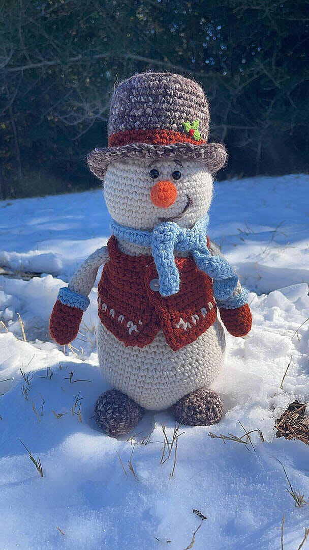Spread holiday cheer with our Rustic Snowman Kit. This charming little guy will melt hearts and add a touch of whimsy to your seasonal decor. Full of rustic charm, it's the perfect addition to any winter wonderland. Let this quaint fellow bring joy to your home this holiday season. Kit includes Mary Maxim Starlette and Starlette Ragg yarns, trims and instructions to make as shown. Requires crochet hook 5.50 mm and polyester fibrefill. Size 12" tall. Intermediate Crochet.