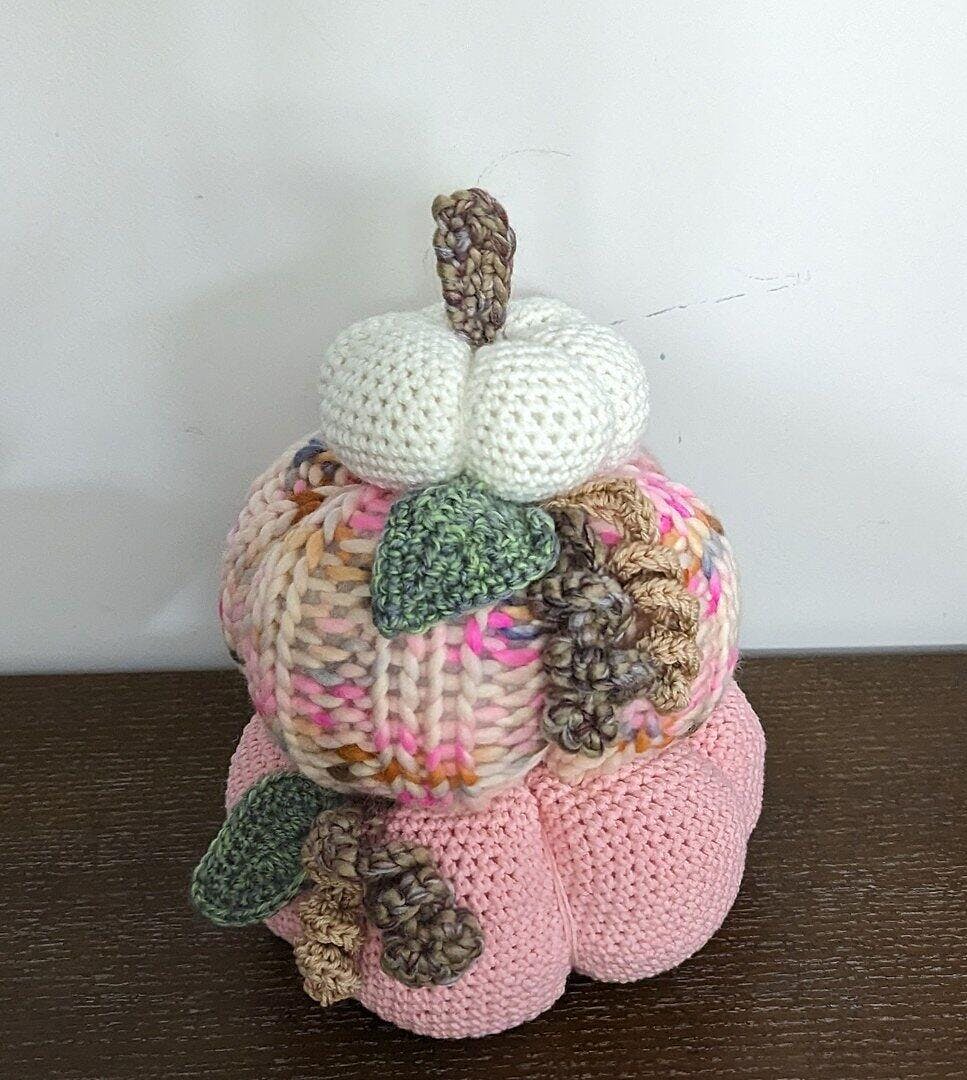 Crochet these charming pumpkins with our pattern. Created originally with Mary Maxim Starlette a worsted weight (180 yds/3.5 oz), and Mary Maxim Milan (not available) a DK sport weight (219 yds/ 3.5 oz). With the wonderful assortment of worsted and DK weight yarns we have available today, you can make this in the colour combinations to fit your fall decor! Keep in mind yardage will vary. Requires crochet hooks size U.S. H-8 (5 mm) and 7 (4.5 mm). Finished stack 15" (38 cm) tall. Lg pumpkin 9" (23 cm), Med pumpkin 7.5" (19 cm), Small 5.5" (14 cm). Intermediate crochet.