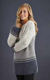 So soft and comfortable, you will want to wear this striped tunic everyday. Kit includes Mary Maxim Natural Alpaca Tweed yarns and instructions. Requires needles size 6.0 mm. Easy Knit.