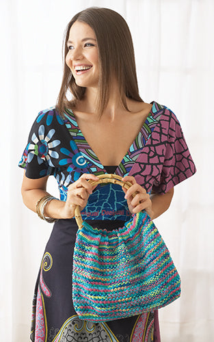Knit this retro handbag using Bernat Handicrafters Cotton yarn. Requires 3 balls and needles size 7 (4.5 mm). Approx. 12" square. Easy Knit.