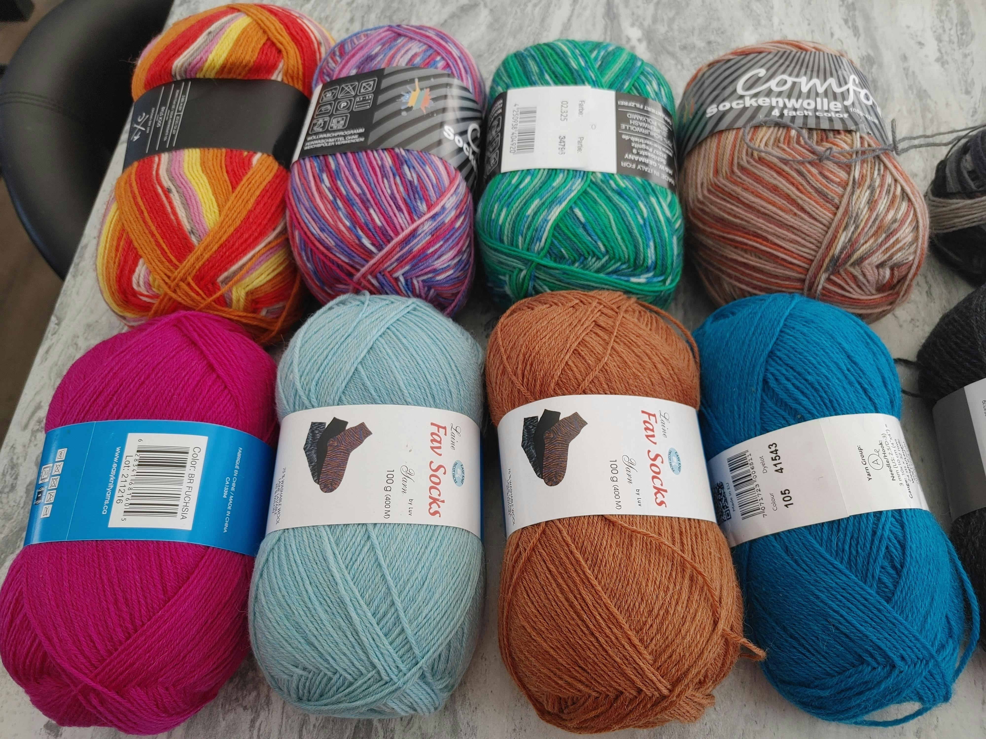 An ideal way to stock up on your sock yarn. Each pack includes premium sock yarn and a pattern to make 3 pairs of socks. Yarn selection varies, not exactly as shown.