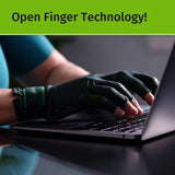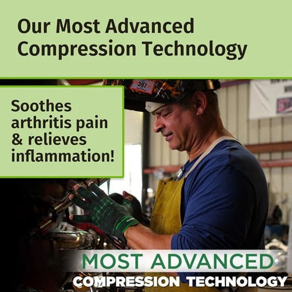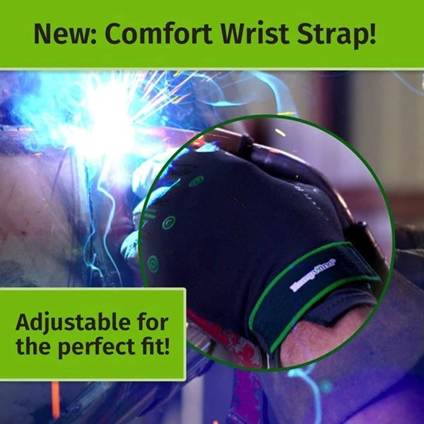 Work and create in comfort! Compression support gloves target hand pain and provide soothing relief from achy wrists, fingers and joints in your hands. Features ultra grippers and comfort wrist strap.