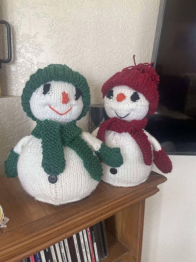 Add a touch of warmth to your friendships with this cozy knit kit. Craft a pair of adorable snowmen, dressed for the winter, and spread the love and joy of the season. Perfect for gifting or displaying in your own home, these cold weather friends will bring a smile to anyone's face! Kit includes worsted weight yarns , buttons and pattern to make 2 as shown. Requires needles size 4.0 mm, DPNs size 4.0 mm and polyester fibrefill. Size 9" tall. Intermediate Knit.