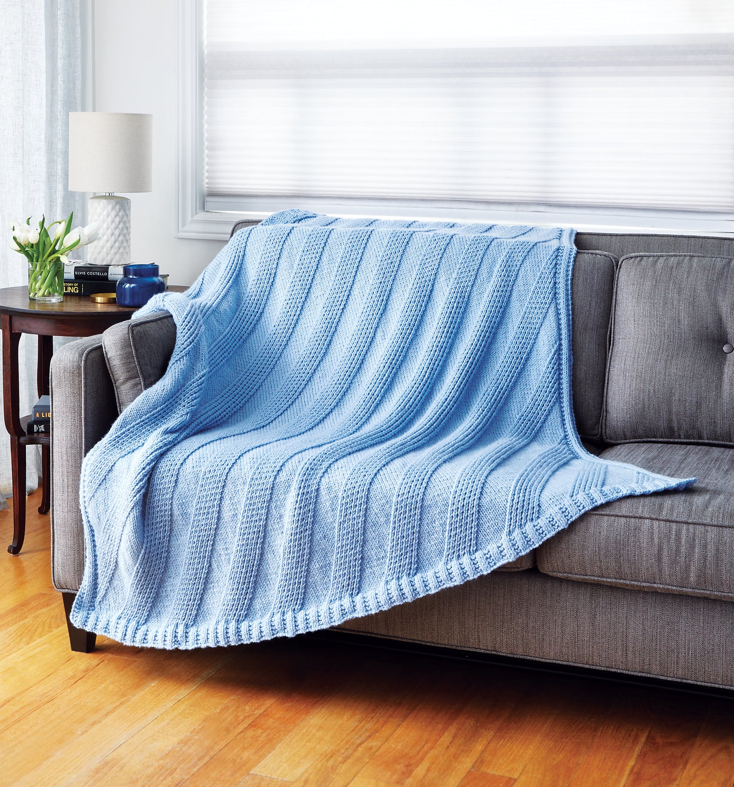 Diagonal Knit Afghan - Sky is backordered and your entire order will ship as soon as it is back in stock.