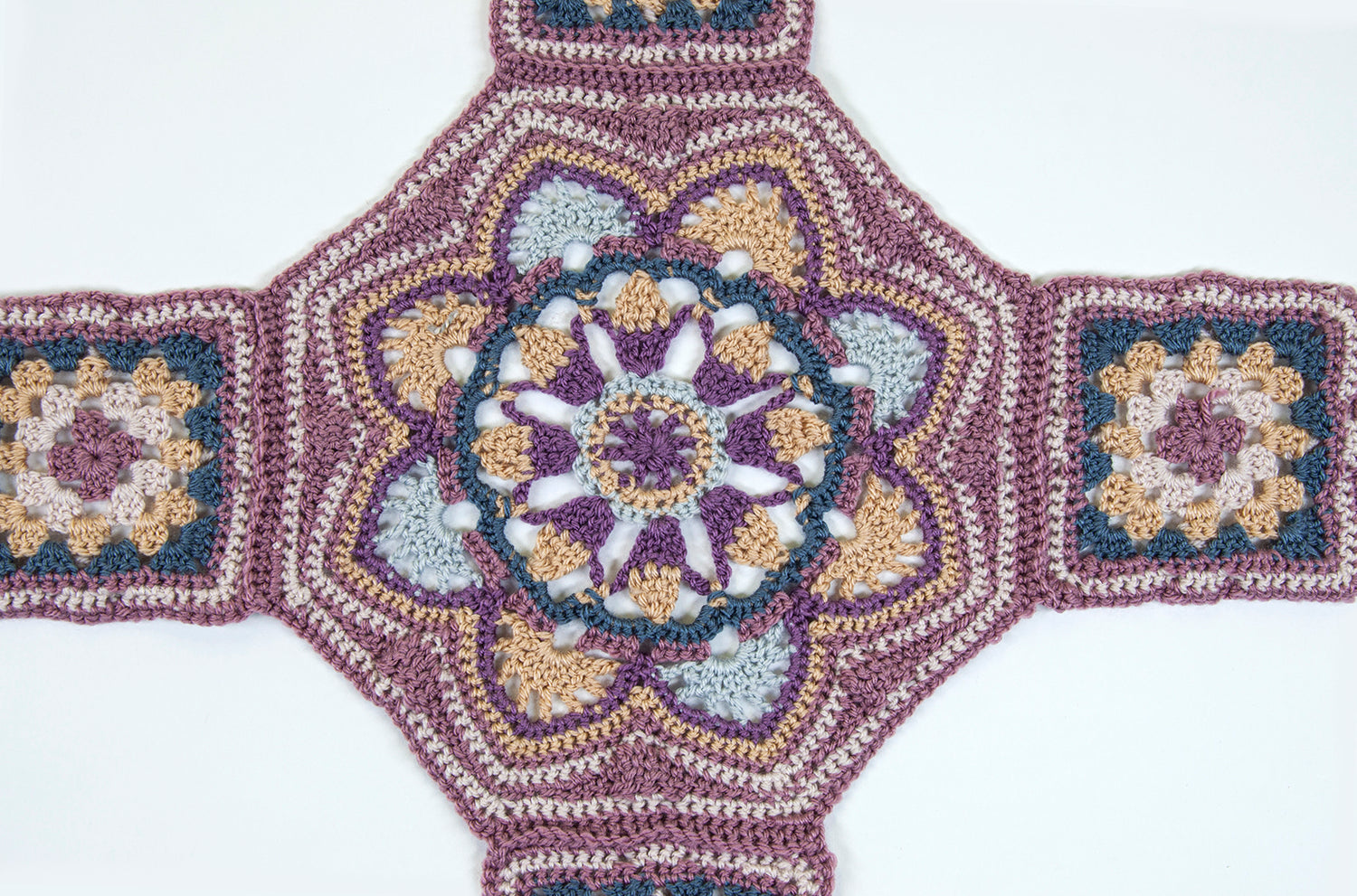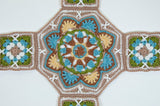 A new version of Jane Crowfoot's stunning Persian Tiles design. This crocheted afghan is formed by joining motifs for the look of beautiful mosaic tiles. Kit include Mary Maxim Mellowspun DK yarns and instructions. Requires crochet hooks sizes 3.50, 4.0 & 4.50 mm. Finished size 46.5 x 46.5". Intermediate Crochet.