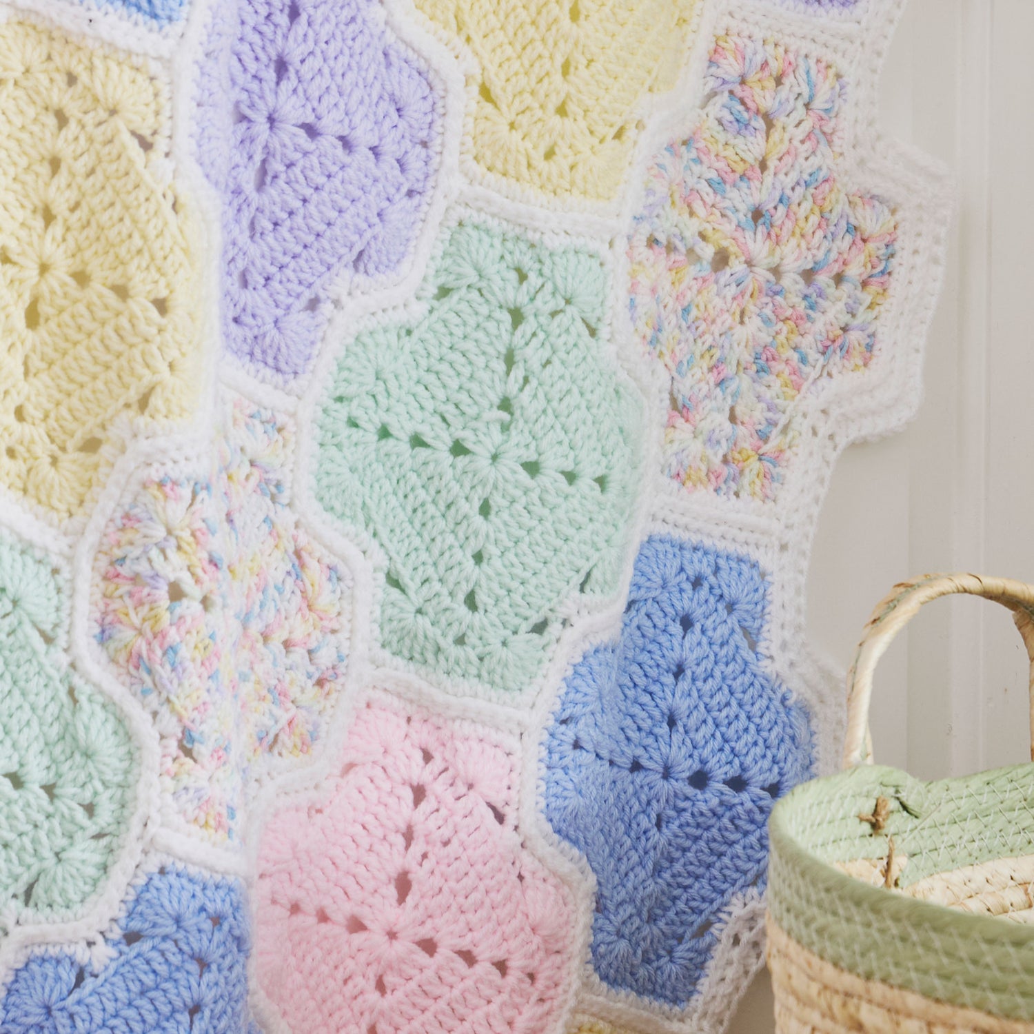 Experience the joy of snuggling up with our Meandering Lattice Afghan. The riot of pastel colours adds a playful touch to this quirky baby blanket. Wrap your little one in warmth and delight with this unique and fun creation. Perfect for creating memorable moments. Designed by Julie Yeager Designs. Kit includes Mary Maxim Baby's Best yarns and instructions. Requires crochet hook size 4.0 mm. Finished size: 36 x 48". Easy Crochet.