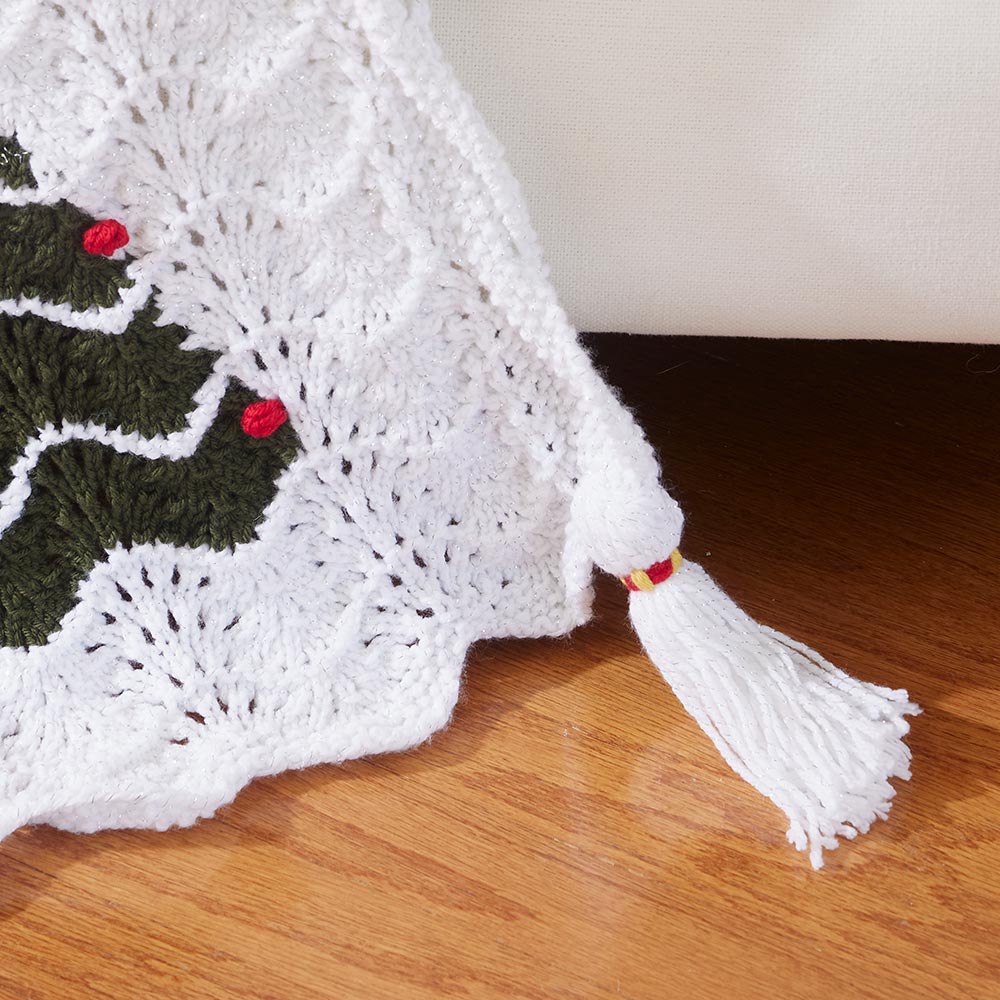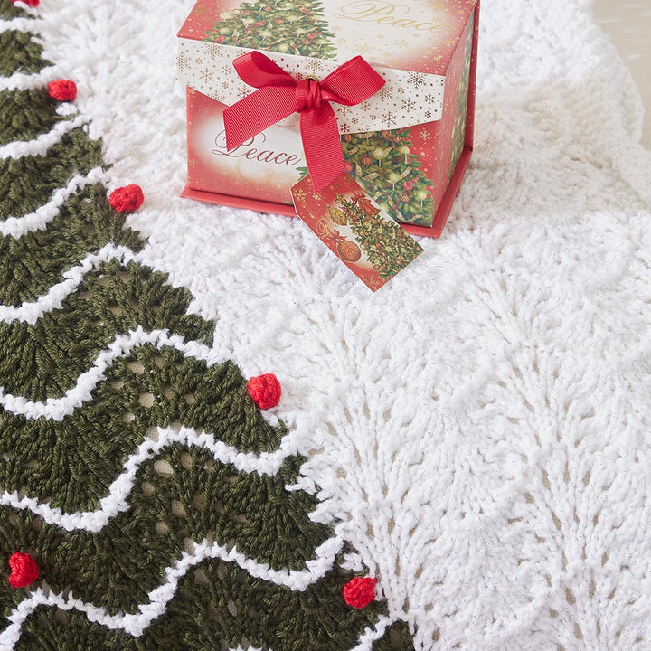 Be wrapped in the coziness and warmth under our Snowy Branches Afghan. Designed by Sherri Sulkowski_our 3rd place winner! This festive design features a beautiful lacy fan pattern and bright seasonal colours that will bring the holiday spirit into any space, while the chunky tassels in the corners complete the look. Snuggle under this cozy masterpiece for a truly magical experience. Kit includes Mary Maxim Starlette Sparkle yarn and instructions. Requires 36" (90 cm) circular needle size 5.0 mm. Finished size: 42.5 x 64". Intermediate Knit.