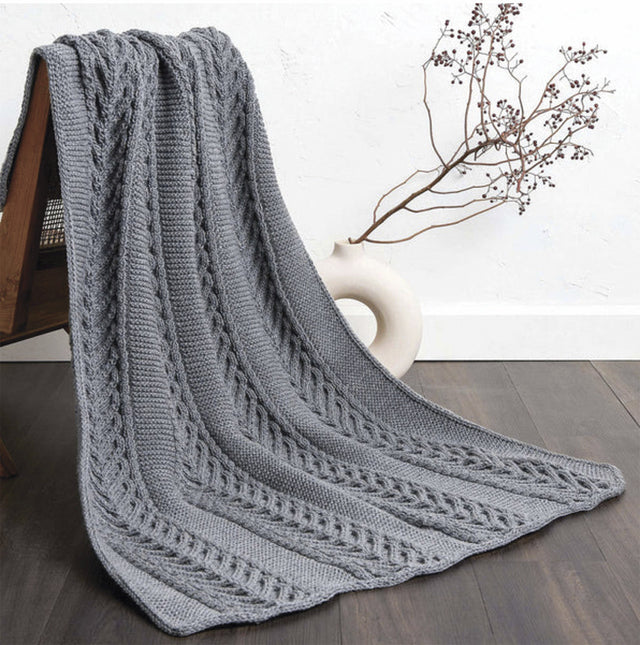 Elevate your comfort with our Ascending Braid Knit Blanket! Bold braided cables add depth and texture, while the choice of colours allows for easy coordination with any decor. Classic and modern combined, this blanket will be the perfect addition to your home. Experience ultimate coziness and style. Kit includes Caron One Pound yarn and instructions. Requires 36" (90 cm) circular needle size 5.50 mm & DPNs size 5.50 mm for the border. Finished size: 43 x 58". Intermediate Knit.