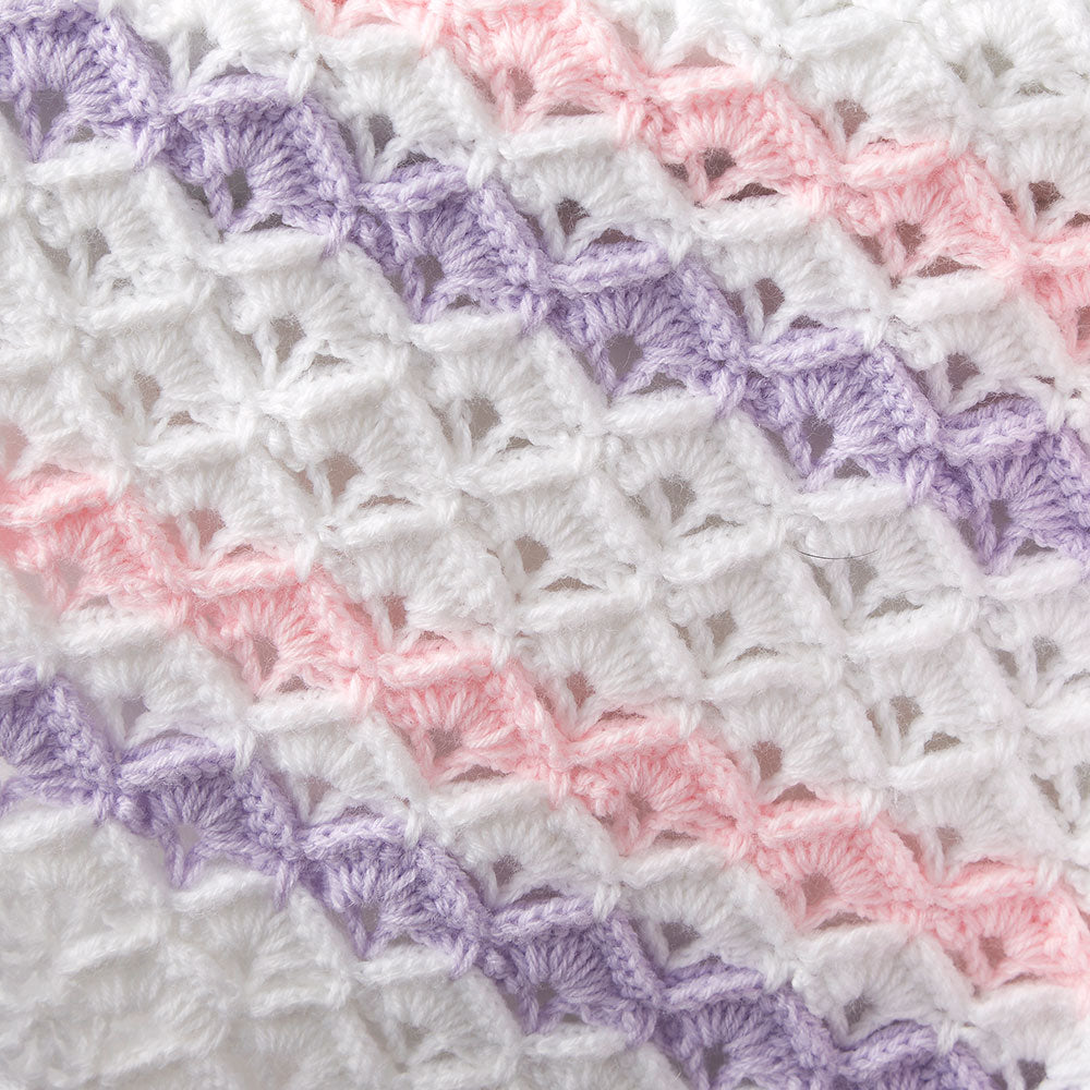 Get cozy with the Boxed Stitch Baby Blanket! Made with fun corner-to-corner shells, this textured blanket will keep your little one warm. Perfect for snuggling up on the couch or adding a pop of personality to their bedroom decor. Bonus: it's machine washable for easy cleaning (because spills happen). Kit includes Mary Maxim Twinkle yarns and instructions. Requires crochet hook size 3.75 mm. Finished size: 31 x 33". Intermediate Crochet.