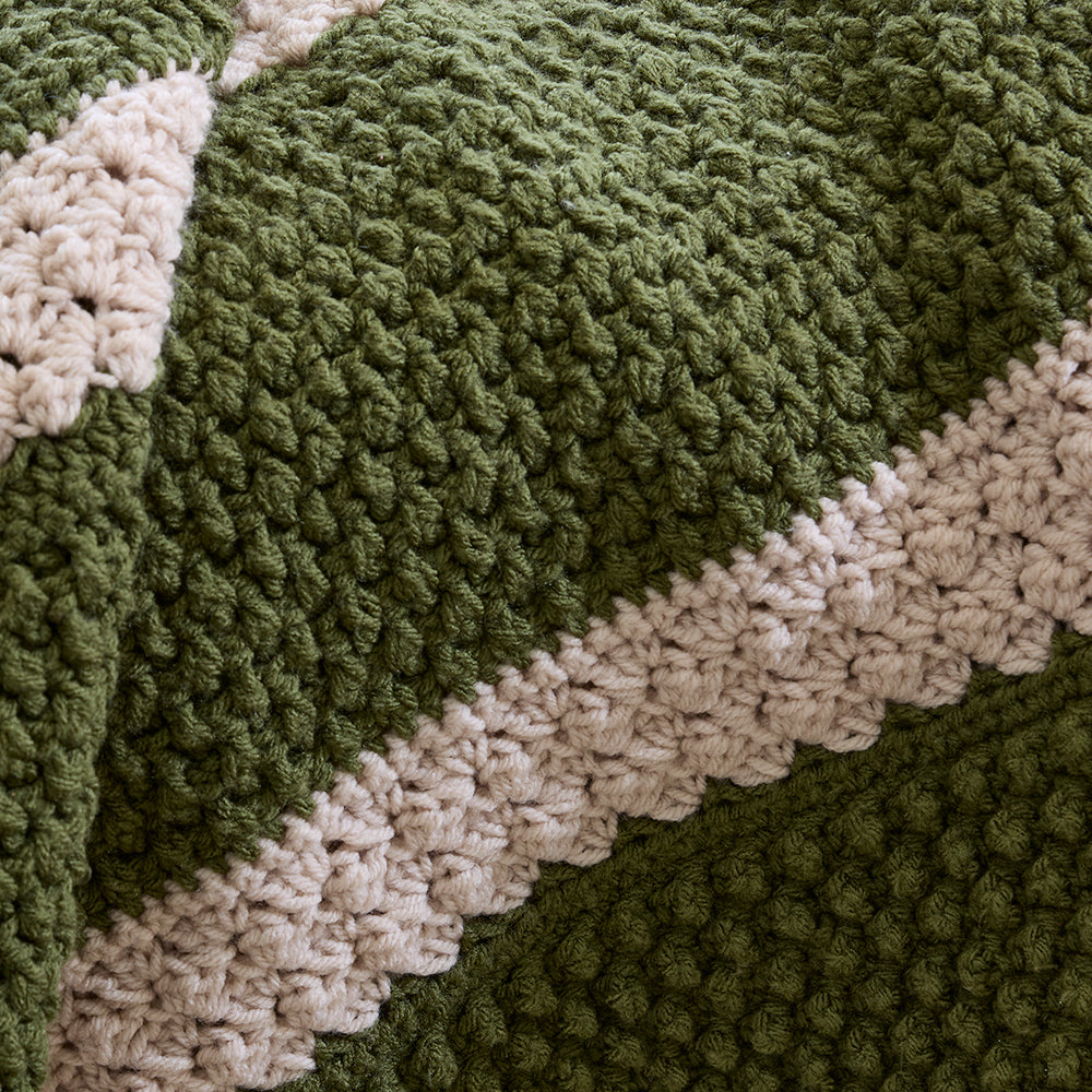 Wrap yourself in a celebration of tactile artistry! This stunning afghan showcases an exciting mix of textured ban patterns that dance across the fabric, each one inviting you to run your fingers across its unique surface. Delicate lacy cream strips visually lighten the design, adding an elegant contrast that catches the light beautifully. Perfect for draping over a sofa, layering on a bed, or cozying up on chilly evenings, this piece transforms any room into a gallery of visual interest and dimensional charm. Designed by Paula Howard. Kit includes Premier Basix Worsted yarns and instructions. Requires crochet hook size 5.0 mm. Finished size: 52 x 62". Intermediate Crochet.