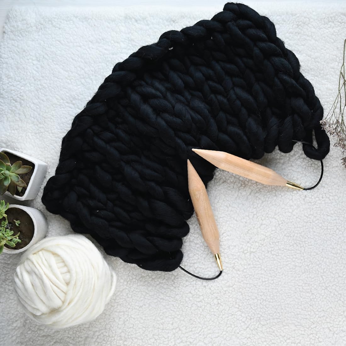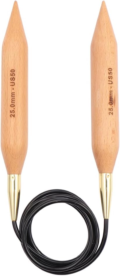 Knit your next cozy masterpiece in record time with these oversized 25mm circular needles! Perfect for creating chunky blankets, throws, and rugs, these large needles let you work through super bulky - jumbo weight yarns like a breeze. Crafted from smooth Beech wood with flexible cable, they're comfortable to hold and built to last. Say goodbye to endless hours of knitting—these big needles mean big results, fast. Ideal for anyone ready to skip the small talk and jump straight to snuggly creations.