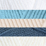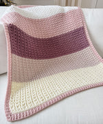 Experience the warmth and comfort of the Snuggle Season Blanket! With large bold stripes in earthy warm colours, and small columns of cable for added texture, this squishy, baby-size blanket will keep your little one cozy. Perfect for tummy time or for a stroller walk. Don't miss out on the ultimate in comfort and style! Designed by MJ's Off The Hook. Kit includes Mary Maxim Mellowspun DK yarns and instructions. Requires crochet hooks sizes 4.50 & 5.0 mm. Finished size: 30 x 37". Intermediate Crochet.
