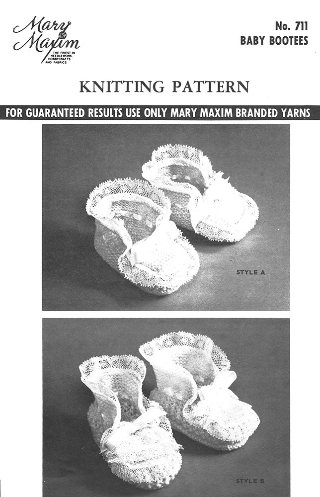 Knit these adorable baby booties with our vintage pattern. Pattern includes instructions to make booties from two different stitch patterns. Designed originally with Mary Maxim Twinkle fingering weight yarn, that offered 175 yds per 1 oz skein at the time. We offer a wonderful selection of fingering weight yarns, including Mary Maxim Twinkle! Keep in mind that yardage has changed. Materials List: Mary Maxim Twinkle 1 skein makes 2 pr, knitting needles size U.S. 2 (2.75 mm). Intermediate knit.