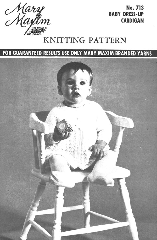 Knit this cardigan with our vintage pattern. Perfect for special occasions or everyday wear. Let your child's inner beauty shine with this lovely cardigan pattern. Designed using Mary Maxim Twinkle fingering weight yarn, that offered 175 yds per 1 oz skein at the time. We are happy to say, we still carry this wonderful fingering weight yarn today, along with other amazing brands and colours! Keep in mind yardages vary. Materials List: Mary Maxim Twinkle 3 skeins for chest sizes 18"(19"). Requires knitting needle size 1. Fits toddler's chest sizes 18"-19"—Intermediate knit.
