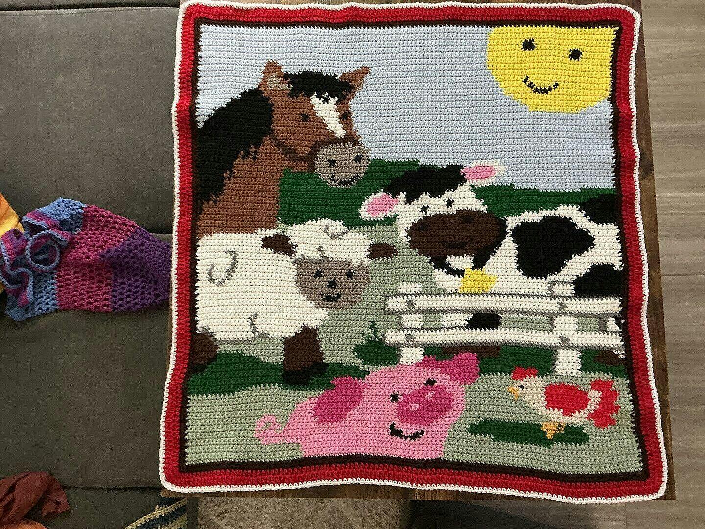 Crochet this adorable blanket using Mary Maxim Worsted Weight yarn and this graph-style pattern.  Originally made with Mary Maxim Starlette yarn, which had 180 yards per skein. Please note colours and yardage may have changed. Finished measurements approximately 36 x 40" when completed. Requires crochet hook US size J-10  (6 mm).