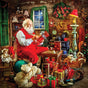 Peek into Santa's cozy cottage workshop where the jolly gift-giver spends his evenings surrounded by colorful presents, ribbons, and festive cheer as he carefully wraps and personally signs gifts for all the good little girls and boys around the world. This vibrant and whimsical jigsaw puzzle captures the magic behind Christmas morning. With its rich, cheerful palette and charming cottage atmosphere, every piece transports you deeper into the enchanted world of North Pole preparations. Perfect for puzzle lovers who adore Santa lore and festive imagery. Whether you're assembling it during holiday gatherings or enjoying quiet winter evenings, you'll find yourself captivated by the intricate scenes of gift-wrapping magic and yuletide joy. An ideal gift for children and adults alike who treasure the belief in Santa's magic, the beauty of holiday traditions, and the simple pleasure of puzzling together as a family. Size: 20 x 20". 500 pieces.