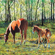 A mare and her foal graze on the sweet Spring grasses in a sun-dappled field, creating a heartwarming scene perfect for puzzle enthusiasts of all ages. This charming Tag Along Jigsaw Puzzle captures a tender moment between mother and baby horse, celebrating the beauty of nature and the bond between these gentle creatures. Ideal for a relaxing afternoon or cozy family gathering, this puzzle invites you to piece together a pastoral escape filled with lush greenery and golden sunlight. Whether you're a seasoned puzzler or just starting out, this delightful design offers hours of engaging entertainment while bringing a touch of countryside charm to your home. Size: 19 x 19". 500 pieces.