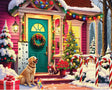 Watch the magic unfold as beloved furry friends gather on a festively decorated front stoop, their eyes gleaming with anticipation as they await Santa's arrival. This delightful jigsaw puzzle brings to life a heartwarming holiday moment that celebrates the joy pets bring to our Christmas celebrations. The charming scene captures the excitement and wonder of the season, complete with twinkling decorations and cozy holiday charm. Whether you're a pet lover, puzzle enthusiast, or someone who adores all things festive, this puzzle offers hours of engaging entertainment. Perfect for holiday gatherings, quiet winter evenings, or as a thoughtful gift for anyone who believes in the magic of Christmas and the special bond between pets and their families. Size: 23.5 x 18". 500 pieces.
