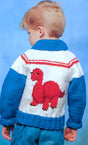 Experience the joy of knitting a dino-mite cardigan jacket with our retro picture-graph pattern. It makes the perfect gift for your little paleontologist! Their face will light up when they receive this unique creation. Nurture their love for learning about all creatures great and small with this special project. Designed using Mary Maxim Titan bulky weight yarn that provided 80 yds per 3 oz skein at the time. Discover the amazing selections of bulky-weight yarns we offer in today's modern colors! Keep in mind yardage varies. Materials List: Size 4-6 MC White (4 skeins), CC Blue (3 skeins), CC Red, Dk Red, Black (1 skein), knitting needles size U.S. 7 (4.50 mm) and 10 (6 mm). Fits sizes 4-6—Intermediate knit.