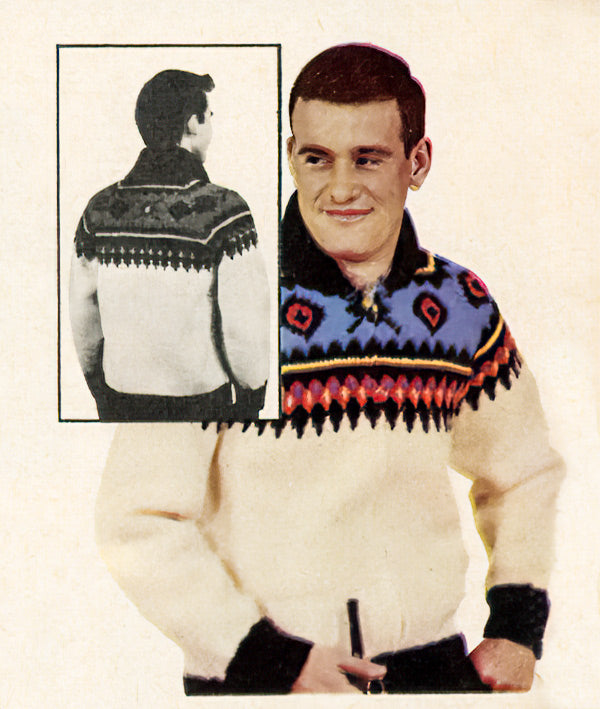 Make a timeless statement with our graph-style cardigan pattern! This unique sweater will set you apart from the crowd and garner attention for its classic style and impeccable craftsmanship. Originally crafted with Mary Maxim Northland wool with 80 yards per skein, we now offer a great selection of bulky yarns to suit your style. Be aware yardage may be different. Materials List: Sz 38 MC (7 skeins), Sz 40 MC (8 skeins) Sz 38 & 40 CC1 Ribbing (4 skeins), CC2 Trim CC3 Trim, CC4 Trim (1 skeins Each). Size 42-44 MC (8 skeins), CC1 Ribbing (5 skeins), CC2 (1 skein), CC3 (2 skeins), CC4 (1 skein), and U.S. 6 (4 mm) and 9 (5.5 mm) needles to bring it together. Radiate confidence today with your very own one-of-a-kind creation! Fits sizes 38-40-42-44—Intermediate knit.