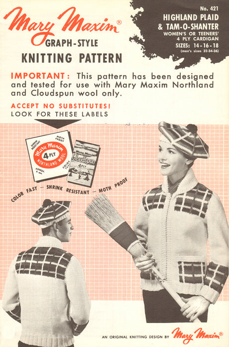 Highland Plaid Cardigan & Matching Tam - O - Shanter Pattern