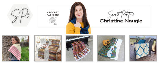 Hey everyone, my name is Christine Naugle, I am the designer and owner of Sweet Potato 3 crochet patterns. My mission is to create innovative designs that teach new techniques and skills in a way that helps foster confidence in your finished projects. I find inspiration for crochet designs through the beauty, textures and colors in nature. I love the creative process in designing and am dedicated to providing detailed, high-quality patterns. My greatest reward is seeing the beautiful work made from one of my designs, so make sure to share it and tag her on social media, @sweetpotato3patterns on FB or IG.