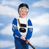 Use this graph-style pattern to knit the Football pullover sweater. (Hockey pullover image for example only - does not include hockey graphic). Pattern will feature the football sports design on the front with stripes & numbers on the sleeves, as shown. Created with Mary Maxim Starlette worsted-weight yarn, which offered 220 yards per skein at the time. With a wide variety of worsted-weight yarns and top-quality brands like Mary Maxim Starlette to choose from, you can easily personalize it to match your team colours. Keep in mind yardages vary. Materials List: Sz 4-6 MC Burgundy (2). Sz 8-12 MC Burgundy (3). All Sizes: Grey (2), Gold (35 yds), Black (15 yds) Lt Gold (15 yds) White (15 yds). Also needed: Knitting Needles size U.S. 5 (3.75 mm) and 8 (5 mm). The perfect pullover for the #1 little sports fan! Fits sizes 4-6, 8-12; Intermediate knit. Hockey pattern PDL18944_5 sold separately