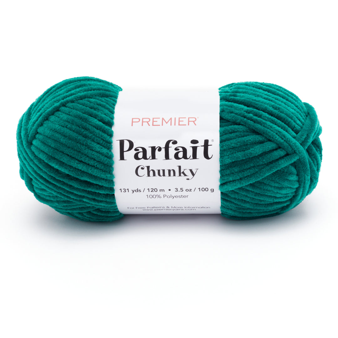 Everything you love about Parfait, a tried and true 100% polyester chenille yarn, in a super bulky weight! Machine washable, and incredibly soft, you'll find this yarn irresistible. Knit or crochet with this superior quality chenille for a project that will be any child's favourite. With our incredible range of colours, you're sure to find the perfect shade. Machine washable and incredibly soft, you'll find this yarn irresistible. 131 yds (120 m) per 3.5 oz (100 gm) ball. Suggested gauge: 10 sts & 14 rows to 4" (10 cm) on size 8.0 mm needles. Yarn weight: 6-Super Bulky.