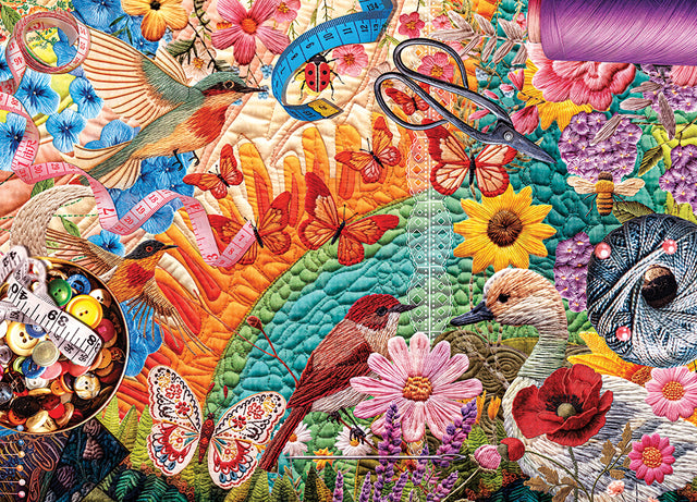 Plongez dans un univers de couleurs éclatantes avec le puzzle « Vol de la Créativité », où des motifs inspirés du patchwork et de la broderie prennent vie sur chaque pièce. Ce puzzle captivant célèbre la rencontre entre l'art traditionnel de la broderie et la conception moderne des puzzles, offrant un véritable festin visuel de motifs complexes et de couleurs vibrantes. Parfait pour les esprits créatifs en quête d'un défi méditatif, il vous invite à ralentir et à savourer la satisfaction d'assembler un magnifique chef-d'œuvre inspiré du textile. Idéal pour les passionnés de loisirs créatifs, les amateurs de puzzles et tous ceux qui aspirent à renouer avec la beauté du fait main. Dimensions : 68 x 49 cm. 1000 pièces.