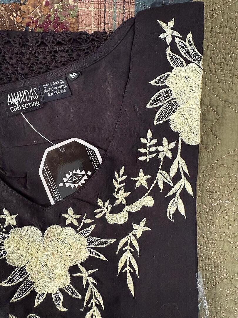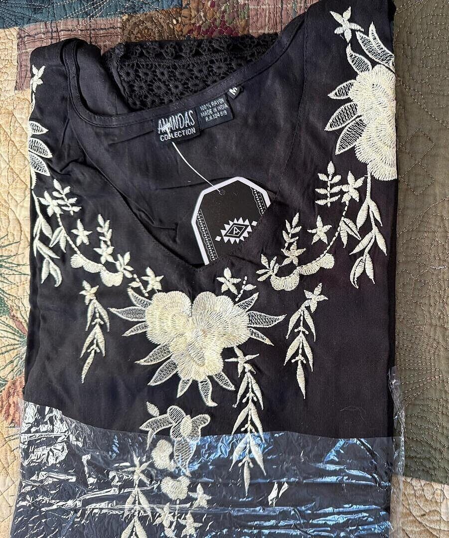 Tunique florale brodée noire - Grand est en rupture de stock et sera expédié dès qu’il sera de retour en stock.