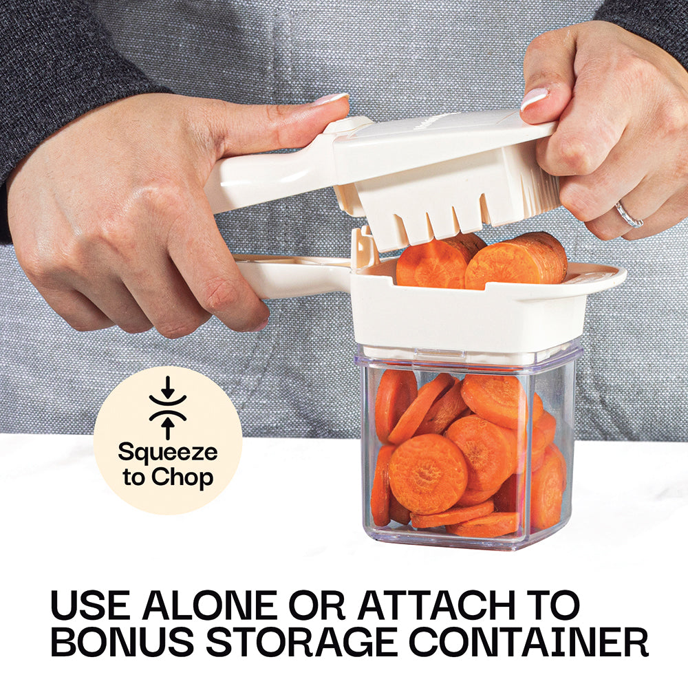 The Nutri Chopper is a game-changer for your kitchen, offering a compact, handheld design that slices vegetables effortlessly with a simple snap. Whether you need thick or thin slices, cubes, or other cuts, it works up to ten times faster than traditional knives, saving you valuable time. Its user-friendly operation makes food prep easier than ever, while the dishwasher-safe construction ensures quick and convenient cleanup. Plus, it comes with a portion container and fresh-keeping lid, allowing you to pre-cut and store your ingredients or take them on the go. Upgrade your cooking routine with the Nutri Chopper and enjoy faster, cleaner, and more efficient meal prep every day.