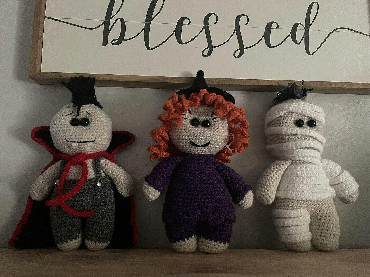 Présentation du kit de poupées Boo Trio - trois petites goules garanties qui feront sourire vos invités cet Halloween ! Ces adorables poupées sont le complément parfait à votre décor effrayant, apportant une touche ludique et fantaisiste à n'importe quelle maison hantée. Préparez-vous à dire « Boo ! » avec le kit de poupée Boo Trio ! Le kit comprend des fils Mary Maxim Starlette , des boutons et des instructions pour réaliser les trois comme indiqué. Nécessite un crochet de 4,0 mm et une ouate de polyester . Taille 14" de hauteur. Crochet intermédiaire.