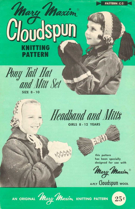 Modèle de chapeau de queue de cheval, bandeau et mitaines