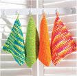 Crochetez un ensemble de torchons en utilisant ce modèle gratuit et du fil Bernat Handicrafter Cotton . Nécessite 1 pelote et un crochet de taille I-9 (5,5 mm) . Taille finie 9 x 9". Crochet facile.