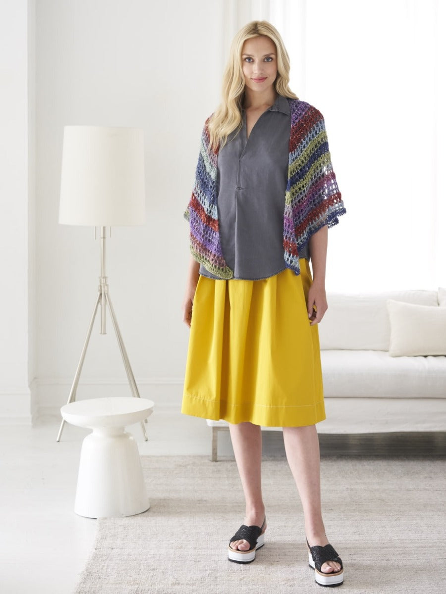 Crochetez ce châle en utilisant Lion Brand Shawl dans un fil Cake. Nécessite 1 pelote et un crochet taille J-10.