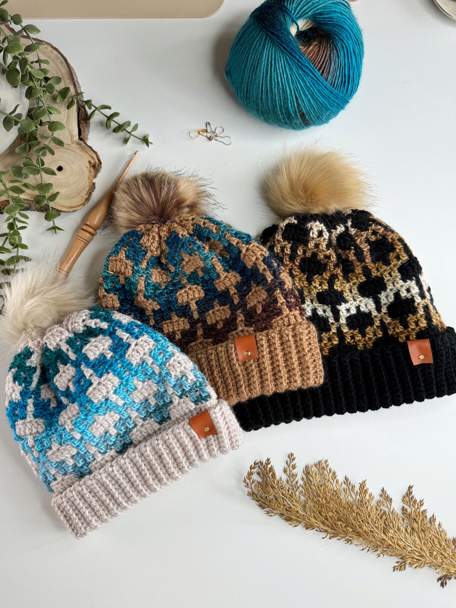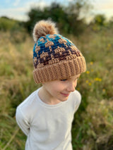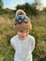 Stay warm and stylish with our Labyrinth Hat. The stunning design adds a bold statement while keeping you cozy. Perfect for those chilly days when you need a little extra warmth. Don't sacrifice fashion for comfort - get the best of both worlds with our Labyrinth Hat. Designed by Hanjan Crochet. Kit includes Mary Maxim Mellowspun DK, Mary Maxim Prism yarns and instructions to make 1 adult and 1 baby hat or multiple baby hats. Pompoms not included. Requires crochet hooks sizes 4.0 & 5.0 mm. Intermediate Crochet.