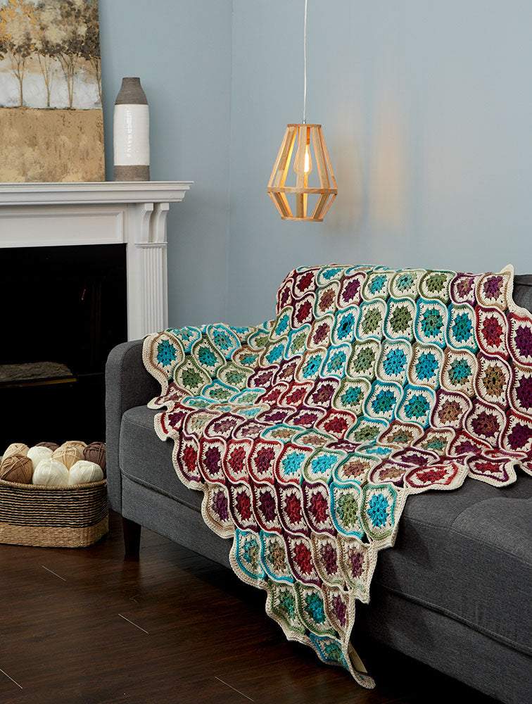 Élevez n’importe quelle pièce avec notre jeté en forme de larme ! Cette pièce polyvalente ajoute une touche de couleur comme pièce maîtresse dans votre salon ou crée une atmosphère accueillante comme couvre-lit pour les invités. Son design unique impressionnera et rehaussera sûrement n’importe quel espace. Cet afghan a été inspiré par la couverture Mystical Lanterns conçue par Janie Crow. Le kit comprend les fils Mary Maxim Prism et Best Value . Nécessite un crochet de 4,0 mm . Taille finie : 43 x 61". Crochet intermédiaire.