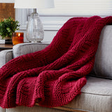 Discover the art of creating a beautifully textured blanket with our easy-to-follow pattern. Dive into a world of bold textures and knit up your own cozy masterpiece in no time! This project was designed using 18 skeins of Mary Maxim Starlette Chunky yarn that offered 60 yds per 3.5 oz skein. Come explore our incredible assortment of super bulky yarns, perfect for this home decor project! Keep in mind yardage varies. Requires 32" circular needle size 17. Finished size 48.5" (123.19 cm) x 53" (134.62 cm)—Easy knit.